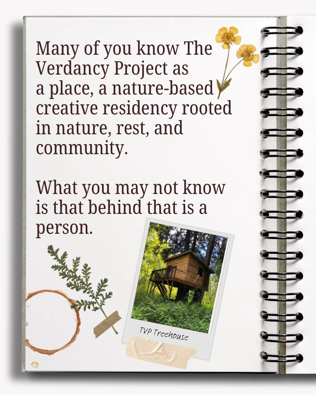 The Verdancy Project is a living creative ecosystem where art, nature, and community intertwine. Based in the Pacific Northwest, we nurture curiosity and environmental stewardship through artist residencies, retreats, land-based workshops, collaborative community projects, and Verdant Publishing, our independent press for nature-aligned voices.